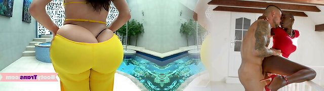 Big caboose latina tgirl in bikini sucking cock