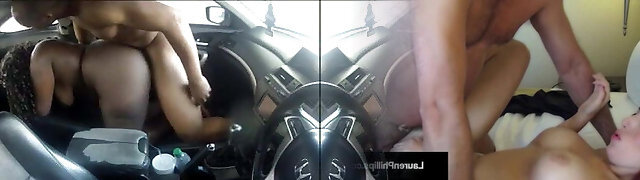 B4B1302-Driving video of a part-time mature chick having an affair with a part-time schoolgirl in a business car
