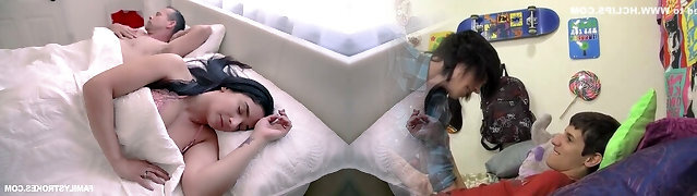 Lewd teen Lexi Lore seduces stepdad and humps him in front of sleeping mom