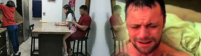 Mi Sobrina Traviesa le Gusta Comer Sentada en las Piernas del Tio Pervertido al Frente de su Mujer
