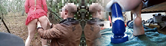 Beauty got a fist in the muff in the woods