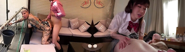 Francesca Le and Kylie Ireland are experienced MILF superstars, that you'll see nude on the couch and taking turns on a dildo. Francesca's the sumptuous chick with jet black hair while Kylie's the sandy-haired with tattooed and an yam-sized bouncy rack.
