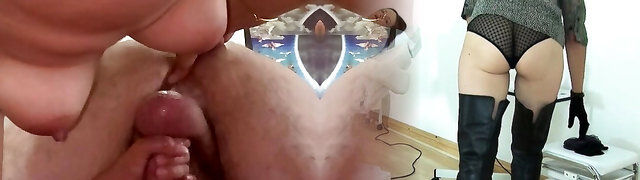 Milking blonde in glasses swallows cum after giving oral job in POV