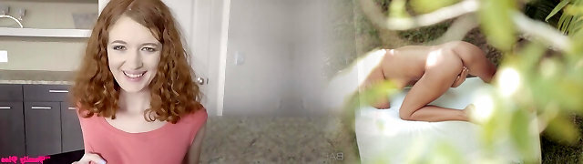 Marvelous redhead tight cubby shaved cameltoe pussy rubbing