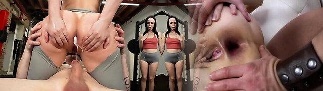 Gym babe pussyfucked while sucking salami