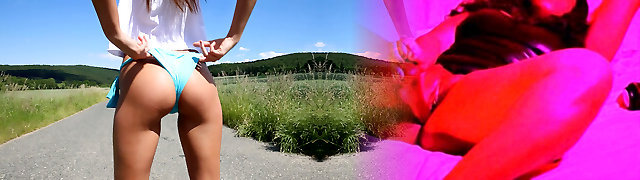 Big Knockers Wife gets her Pussy ravaged on Public Trail after Sweaty Workout