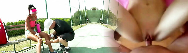 On the tennis court with two bombshells