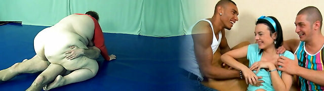 Carmen Valentina vs Lance Hart in mixed naked wrestling fight