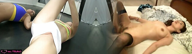 Stockings workout and Feeldoe fucking