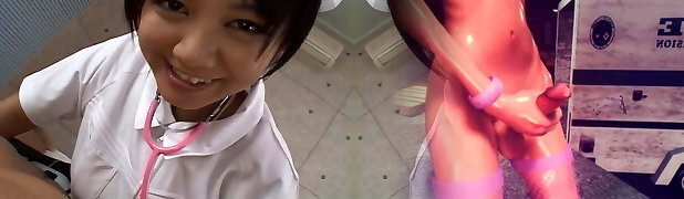 Asian nurse is sucking and breast fucking the cock