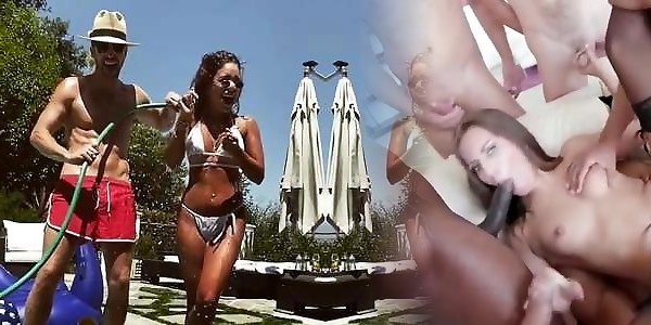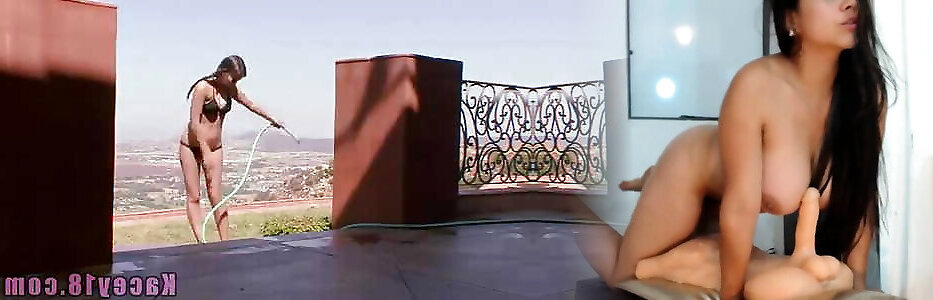Sexy teen Kacey 18 plays with the water hose and sprays water