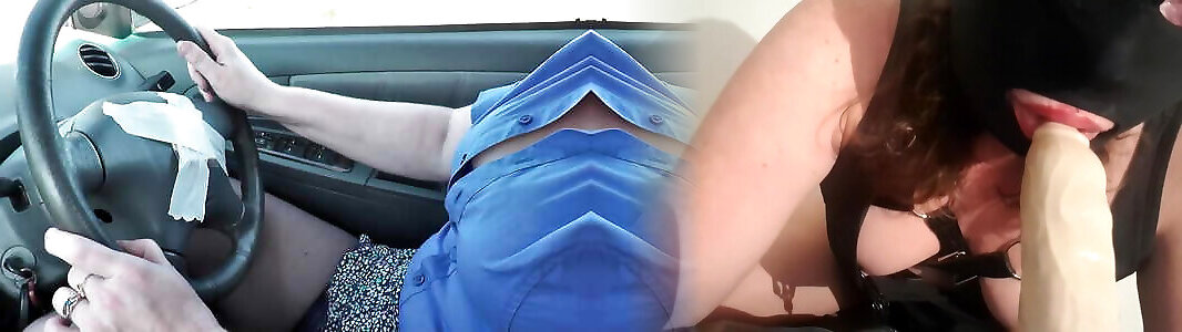 No panties in public. Public nudity. Sexy blonde MILF drives car without panties under skirt. Naked in public. Big natural tits