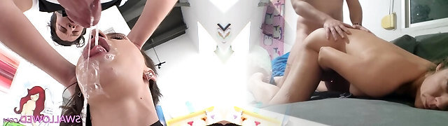 Jamie Young gets Reverse Cowgirl Creampie and Swallows the Cum