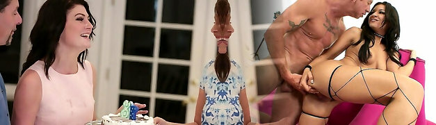 Black-haired in glasses Selena Stuart gets her pussy and face penetrated on the first date