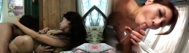 Two Japanese schoolgirls blow multiple studs and exchange cum