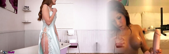 Two charming dolls enjoy Massage and crazy oiled threesome