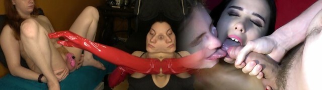 FluidSuspension Red Latex Gloves Double Fisting Extreme Gape for Anal Squirting Sissy Mega-bitch