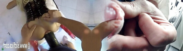 Extreme Numerous Squirt with Toilet Brush Fuck