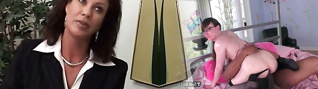 Nerdy and voracious nympho Julie Kay is ebony blowlerina fellating spunk-pump right