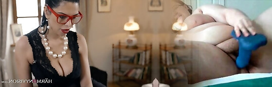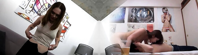 Nerdy stunning huge breasted dark haired gets her puss licked at work