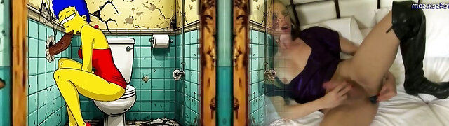 The Simpsons Pornography Parody: Sexy Cuckold Wife Marge Lets a Black Dude Fuck Her In The Public Toilet