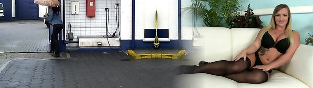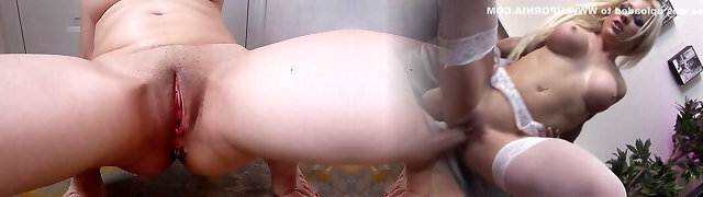 Curvy blonde babe in stockings gets put in a gloryhole room, where she pleases cocks with crazy mastery