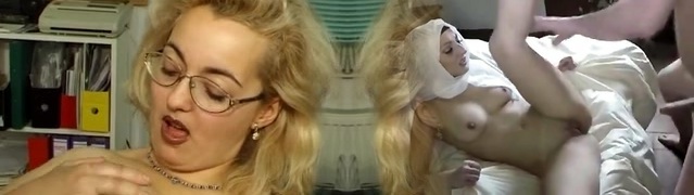 Light-haired girl's hairy pussy gets a thorough dicking from a strung up guy