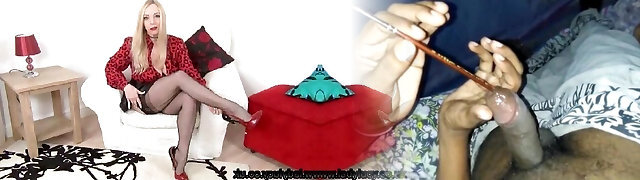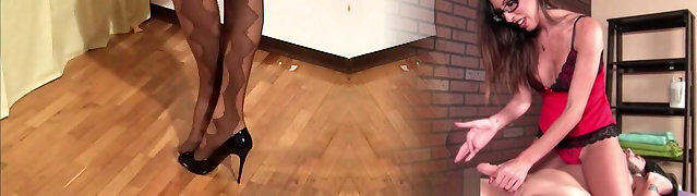 Teen school teacher gives femdom handjob on glistening pantyhose