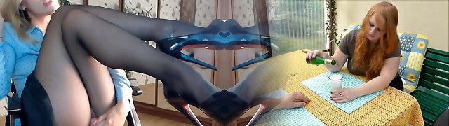 Business Girl Mutual Masturbation Cumshot On Nylon Gams In High Heels