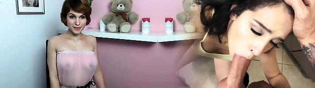 Short Haired Blonde Ts Patti Takes Two D - SHEMALE CUM