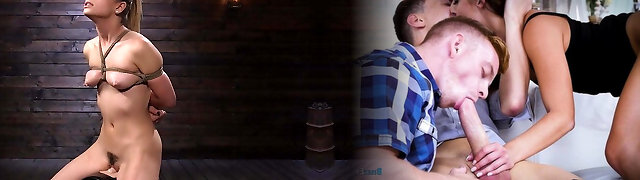 Sandy-haired tied on the floor spanked and fucked by machine