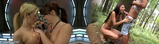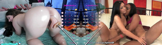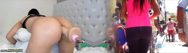 Pussy playing lesbian babes use dildo machine