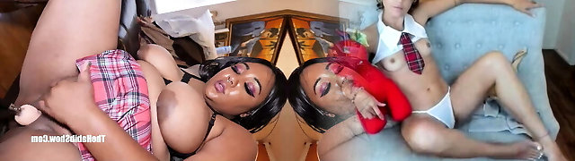 two guys tearing up two schoolgirls
