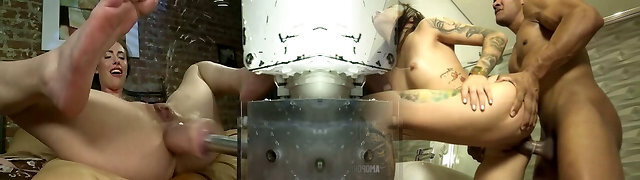 Babe double penetration machine fucked
