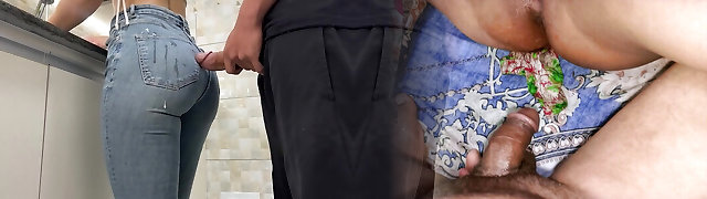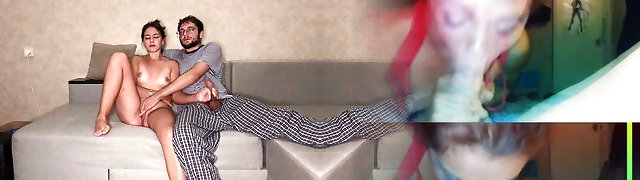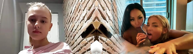 Samara and Bony get to touch and deep-throat each other's cunts while their stepdad is in the bathroom. Part 1