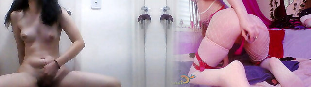 Sexy big tits shemale Sweet A solo masturbation in bed