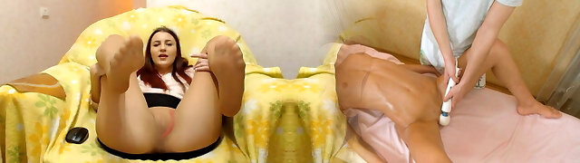 Footjob Assjob and Pussyjob Till He Cum in My Pantyhose