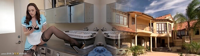 Brunette Penny Barber wearing nylon pantyhose blowing a dick