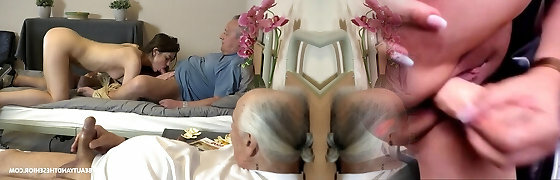 Old couple fuck son's teenie gf