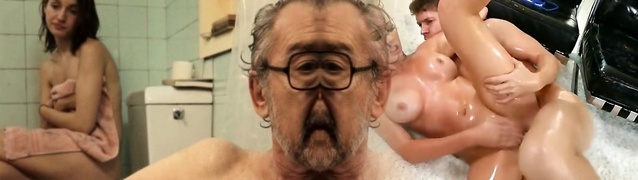 Two Beautiful Young Pussies Have Nice Threesome With Grandp