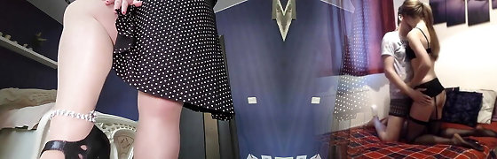BBW stepmom sissy Training with strap on dildo - crossdresser boned