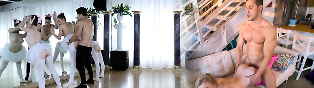 Pornstars crash college party and light-haired couple Ballerinas