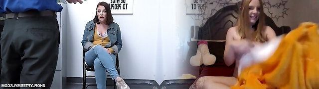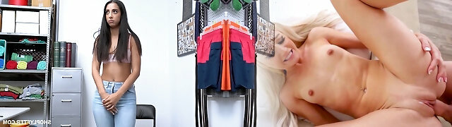 This busty dark-haired teen shoplifter tried to creep out with some extra lingerie