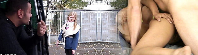 Blonde Connelia Loveneini inhaling a man sausage and fucking in the van