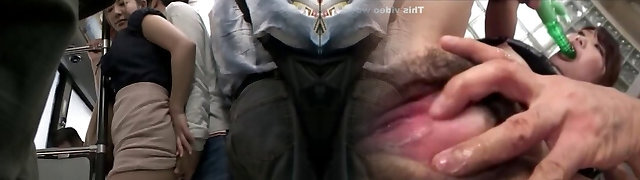 Sexy Asian girl with an awesome body getting her pussy fingerblasted on a bus