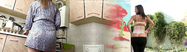 Son ass fucking sex with step-mother in the kitchen. Amateur mother ass and Blowjob
