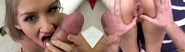 Blond Trillium jerks off a wood and gives a rimjob to her man