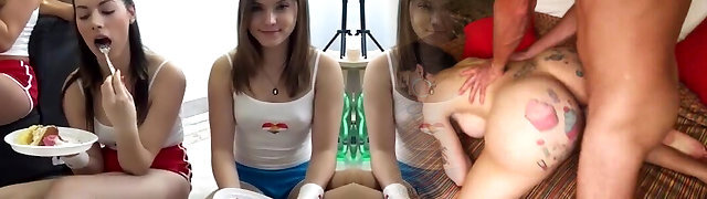 Hardcore fourway romp with graduate students Remi Jones and her best girlfriend