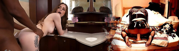 Mixed Race Ebony-Asian Cracker Babe Gold Bounces On Immense White Cock
