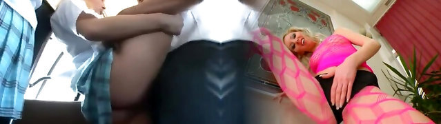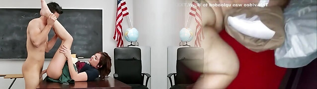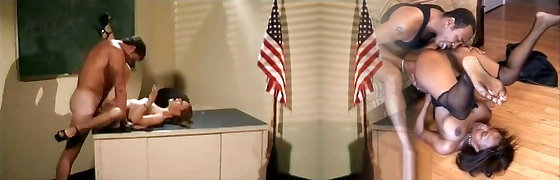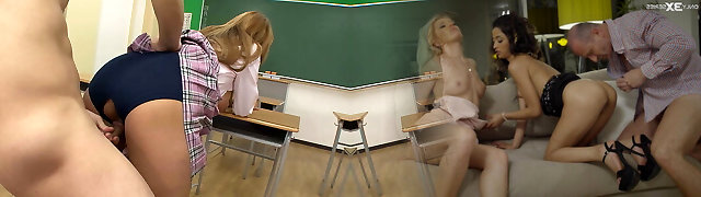 Six-cram teacher fucks pigtailed brunette student three ways in class
